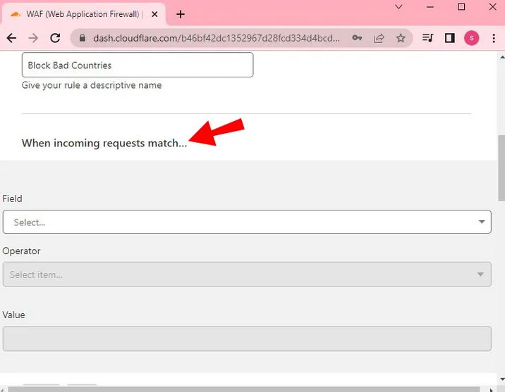 - Below the title you will see "When incoming requests match...".