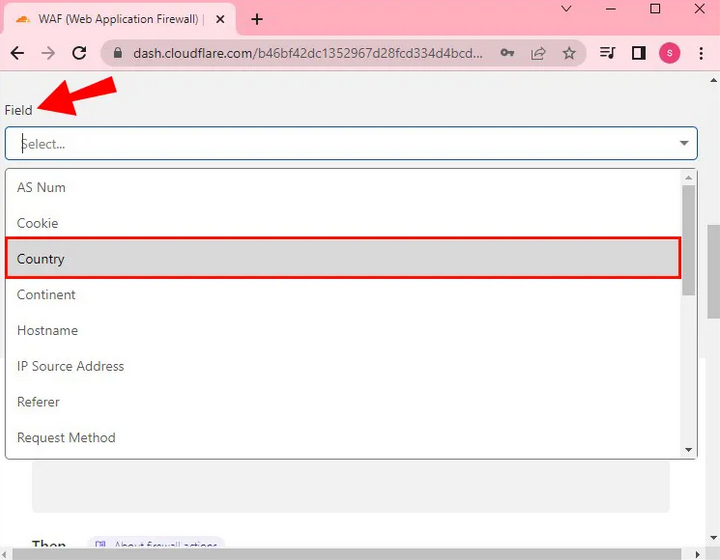 - In the "Field" field, select "Country".