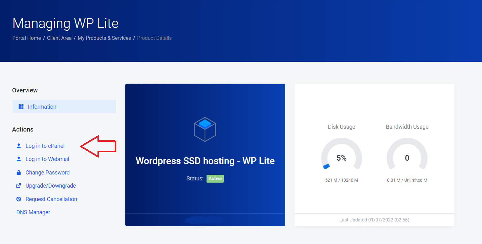 5. Kairėje pasirinkite „Prisijungti prie cPanel“.